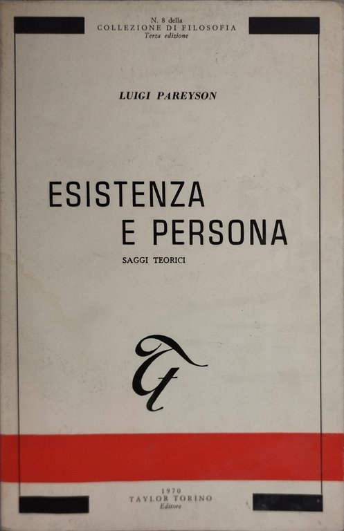 luigi pareyson esistenza e persona saggi teorici. , taylor torino editore 1970 italiano, 209 °°