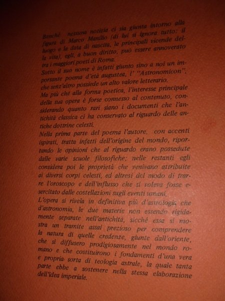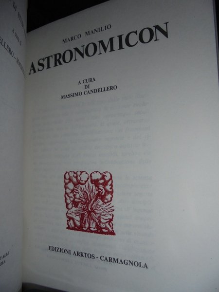 (Esoterismo) Marco, Manilio. Carmagnola, Edizioni Arktos, 1981. ASTRONOMICON. A cura di Massimo Candellero. In-8° piccolo, cart. edit. xxiii, 317 pp. con alcune ill. in nero n.t. In ottimo stato di conservazione. Neg. lett. mod. mob. L.