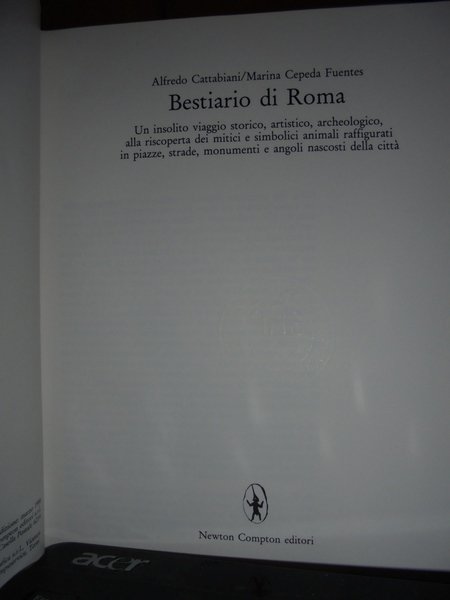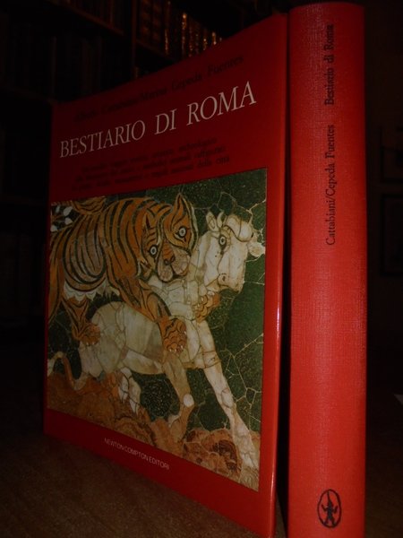(Esoterismo) Alfredo Cattabiani/Marina Cepeda Fuentes. Roma, Newton Compton Editori, 1986. Bestiario di Roma. In-8°, tela rossa con sovracopertina ill. a col. 392, (6) pp. con numerose illustrazioni in bianco e nero anche a piena pagina nel testo. Esemplare in stato di nuovo. Neg. mob. rosso