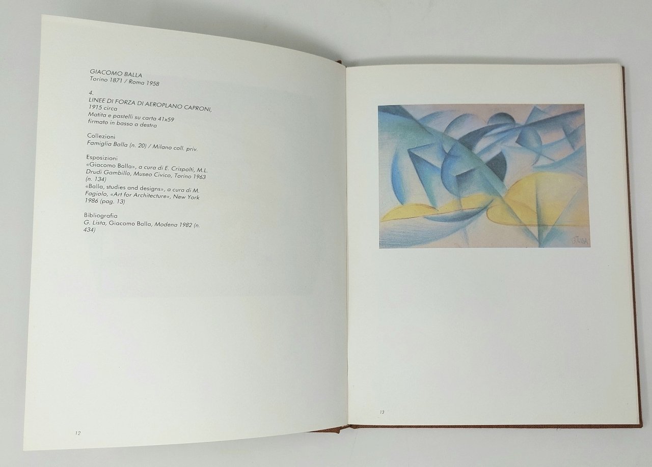 >in-4, pp. 100 illustrate in nero e a colori con 95 riproduzioni di quadri, documenti e foto. Legatura in tela editoriale. Catalogo della mostra sul Futurismo tenuta a Venezia, Studio d'arte Barnabò, nel 1986, stampato in caratteri FUTURA su carta "Rusticus" in 700 esemplari. Perfetto esemplare.