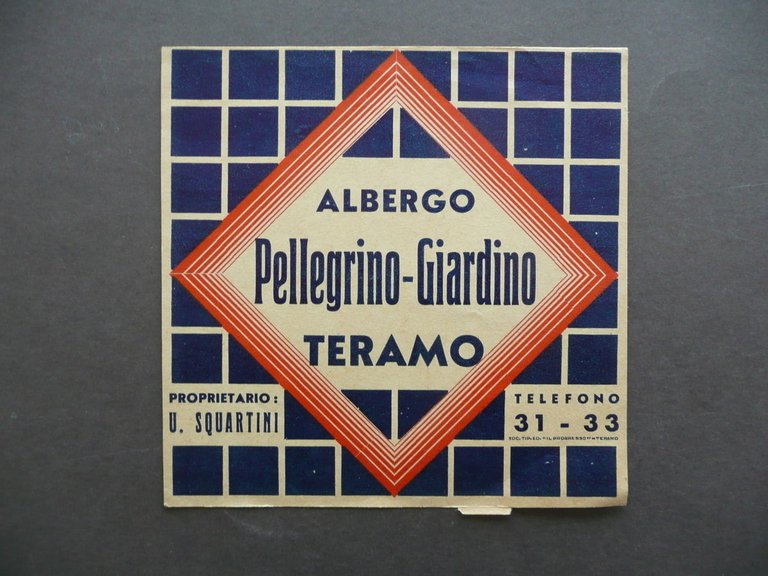 Vedere la descrizione dettagliata Etichetta valigia, Albergo Pellegrino-Giardino Teramo proprietario U. Squartini Soc. Tip. Ed. Il progresso", s.d., ma anni '40 del Novecento; 11x11,3 cm., etichetta pubblicitaria ill. a colori. Condizioni di conservazione. Esemplare in buonissime condizioni, qualche leggero segno d'uso e pieghette ai margini. SC03.D4507 MT Per libri e documenti su questo e altri argomenti visitate il nostro negozio "Libreria Grandangolo" Data l'importanza delle 5 stelle rilasciate durante l'assegnazione del feedback, invitiamo tutti gli acquirenti, se soddisfatti del loro acquisto, a rilasciare tutte le 5 stelle. La mancanza anche solo di una stella illuminata è molto lesiva per noi venditori professionali. Grazie! CONDIZIONI DI VENDITA Spedizione Fino a 5 kg piego di libri raccomandato, oltre i 5 kg pacco postale. Si ricorda che l'imballo viene eseguito con la massima cura. La merce viene spedita a pagamento avvenuto e viaggia a rischio e pericolo dell'acquirente. Per maggiori informazioni vedi la pagina SPEDIZIONI del nostro negozio. Ritiro diretto Siamo disponibili per il ritiro diretto a Modena e a Milano. Per gli indirizzi delle sedi vedi la pagina DOVE SIAMO del nostro negozio. Acquisti multipli Se si acquistano più libri, la spedizione si paga una sola volta, purché si rispettino gli scaglioni di peso. Estero / Foreign For international shipment, please contact us. Metodo di pagamento Pay Pal, bonifico bancario, versamento postale (cc/p, vaglia o altro). La spedizione avverrà entro i primi 4 giorni lavorativi dopo la conferma di avvenuto pagamento. Si emette ricevuta fiscale e a richiesta fattura. Il pagamento deve essere effettuato entro 7 giorni lavorativi dalla data di acquisto, trascorsi i quali l'oggetto sarà rimesso in vendita. Feedback Viene rilasciato dall'acquirente dopo il ricevimento di quanto acquistato. Data la sua importanza, vi invitiamo a leggere il breve testo della pagina FEEDBACK del nostro negozio. Pertanto, in caso di qualsiasi problema, non esitate a contattarci. Diritto di recesso L'acquirente ha il diritto di restituire l'oggetto entro 14 giorni ed essere rimborsato, escluse le spese di porto e imballo. L'oggetto deve essere restituito, dopo previa comunicazione, imballato e nelle medesime condizioni di come era all'origine. "