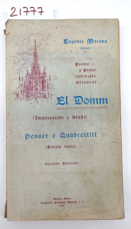 Eugenio Manara El Domm Penser e Quadrettitt poesie e prose cadenzate milanesi 2° ed. Marcolli 1910