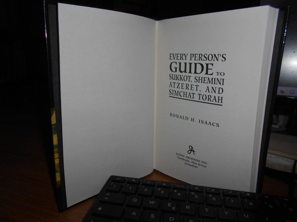 Ronald H. Isaacs. Northvale, New Jersey Jerusalem, Jason Aronson, 2000. Every Person's Guide to Sukkot, Shemini Atzeret, and Simchat Torah. In-8° piccolo, cartonato edit. ill. a col. xii, 181, (3) pp. con alcune illustrazioni n.t. Come nuovo. Uff. stanzetta mob. sinistra 3 - 4 carc.