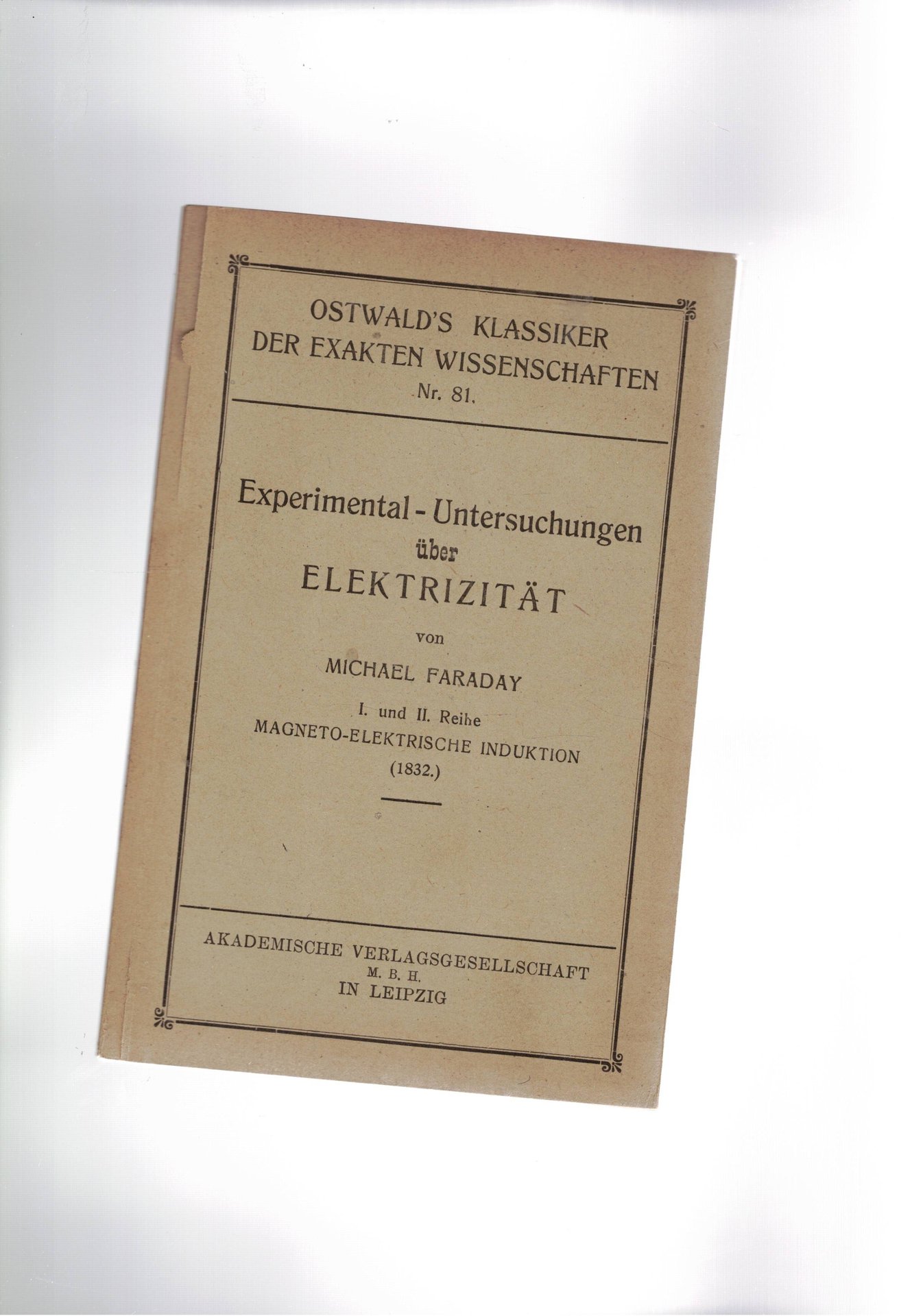 Experimental-Untersuchungen uber Elektrizitat. Herausgegeben A. J. v. Oettingen.