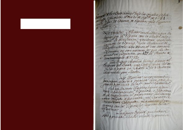 Extracto de las condiciones bajo las cúales se ha concluído y firmado el dia 10 de Septiembre de 1784 la Paz entre la Corona de España y la Regencia de Tripoli.