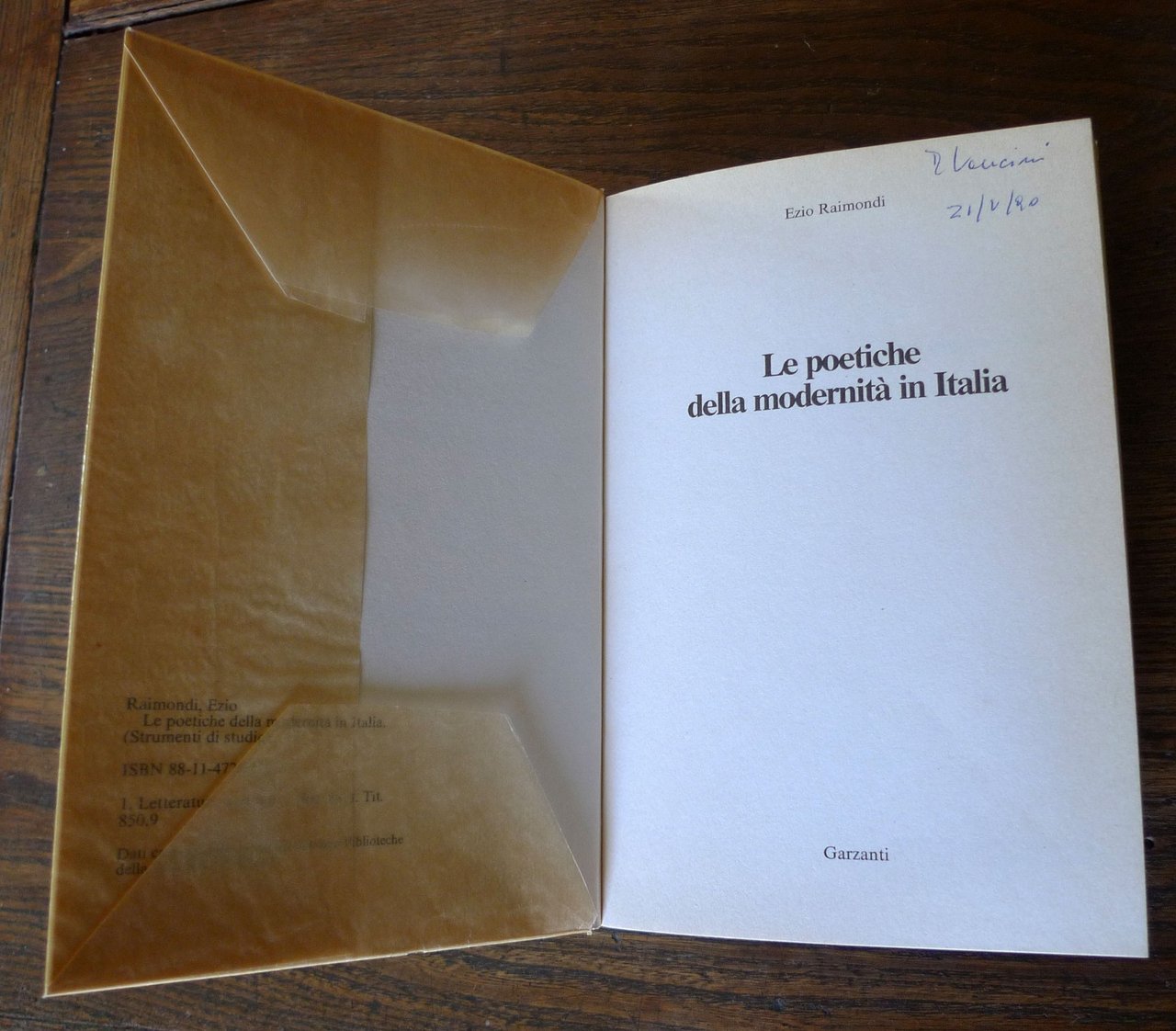 Ezio Raimondi,LE POETICHE DELLA MODERNITÀ IN ITALIA.Garzanti Editore, Milano 1990,prima edizione: aprile 1990,brossura, 19,5x12,5 cm., pp.131,ISBN: 88-11-47258-X,peso: g.250cod.10173CONDIZIONI DEL LIBRO: ottime,personalizzato con sovraccoperta in carta velina,firma e data al frontespizio