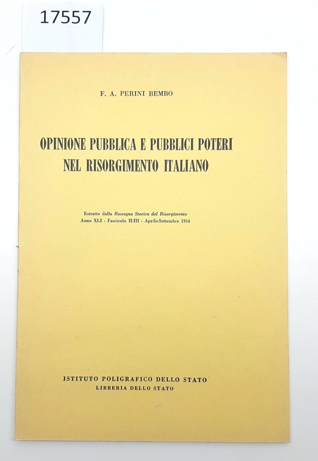 F. A. Perini Bembo Opinione pubblica e pubblici poteri nel Risorgimento italiano estratto dalla rassegna storica del Risorgimento 1954 Istituto poligrafico dello Stato Libreria dello Stato