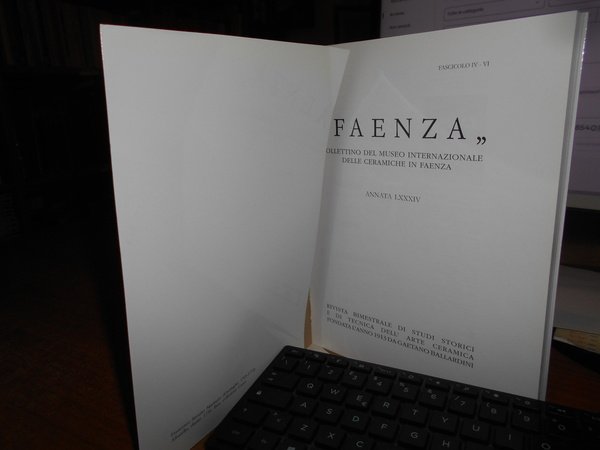 Faenza, Litografie Artistiche Faentine, 1998. Faenza. Bollettino del Museo Internazionale delle Ceramiche in Faenza. Fascicolo IV - VI annata LXXXIV. In-8°, br. con sovracopertina ill. a col. da pag. 192 a pag. 395 con illustrazioni in nero n.t. Ottimo stato. Uff. B - III - 1 - 1