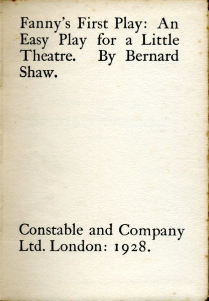Fanny's First Play : An Easy Play for a Little Theatre