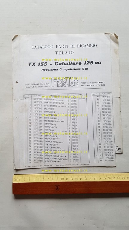 Fantic Caballero 125 Regolarità Competizione TX 155 catalogo ricambi TELAIO