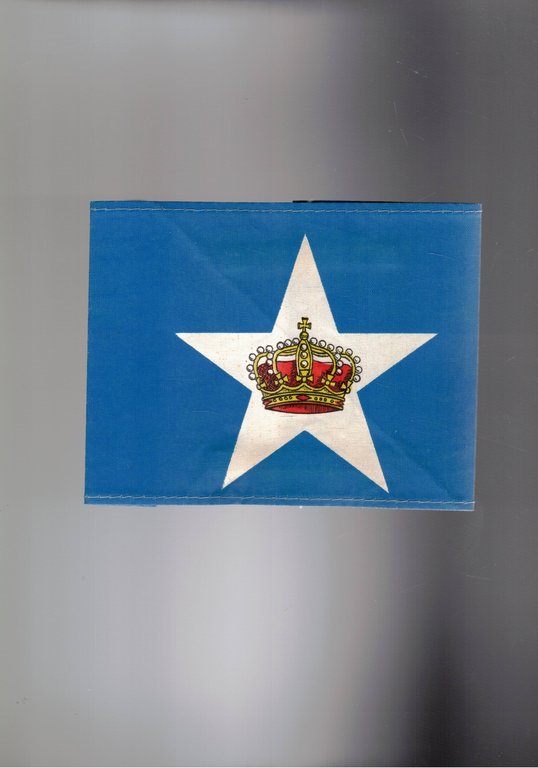 Fascia in stoffa di cm. 16 X 11,8 di colre azzurro con al centro una stella bianca a sua volta con al centro la corona d'Italia. Fascia che veniva indossata dai rappresentanti della lista del Partito Monarchico Italiano e dai rappresntanti della lista che accedevano ai seggi durante le elezioni.