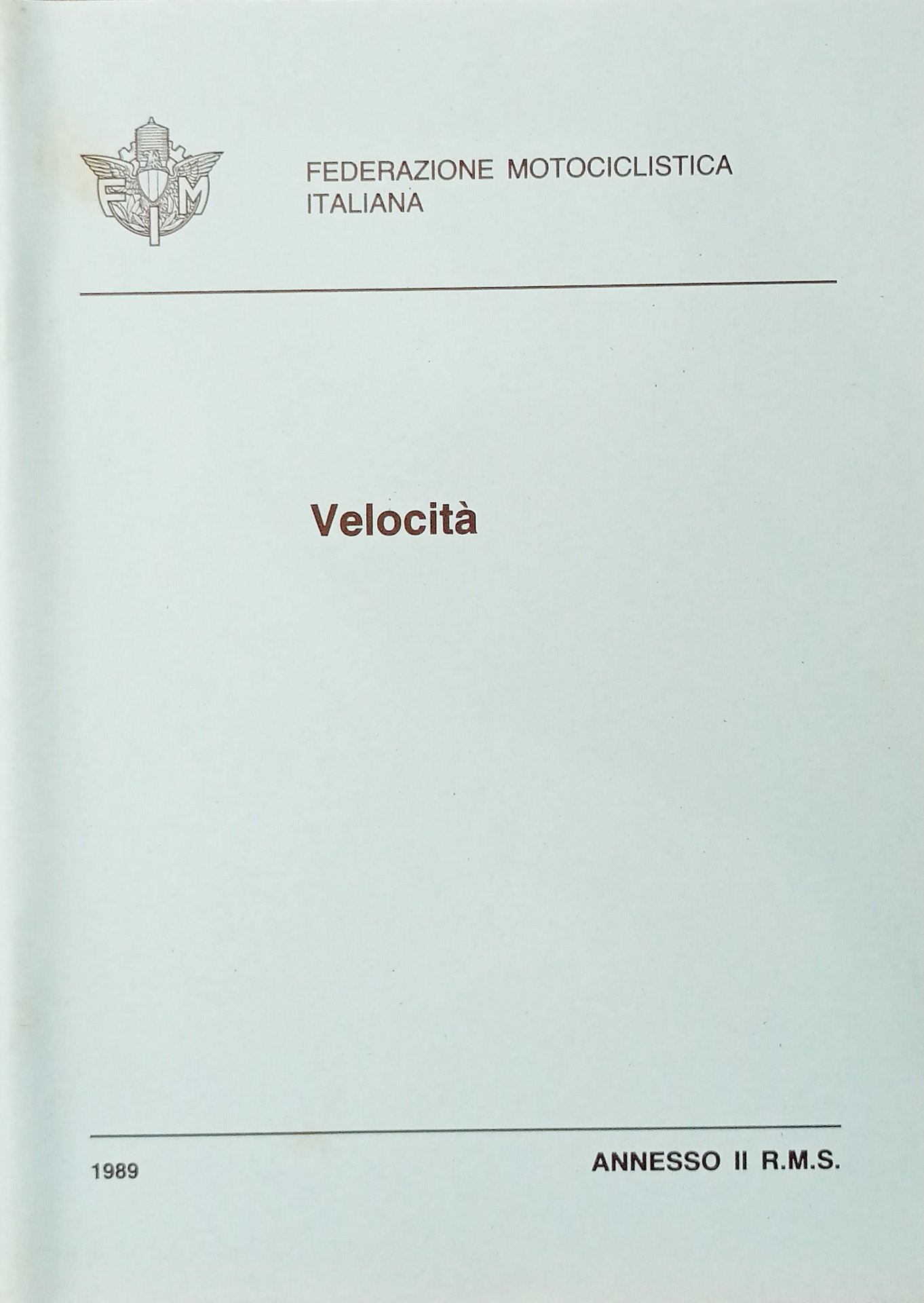Federazione Motociclistica Italiana R. M. S. - Velocità - ed. 1989