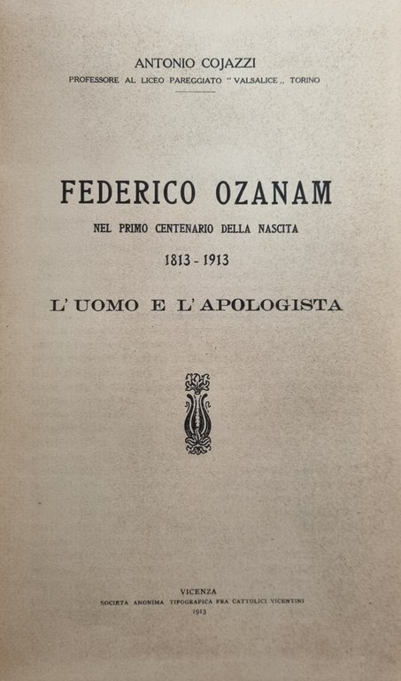 FEDERICO OZANAM NEL PRIMO CENTENARIO DELLA NASCITA. 1813 - 1913. L' UOMO E L' APOLOGISTA