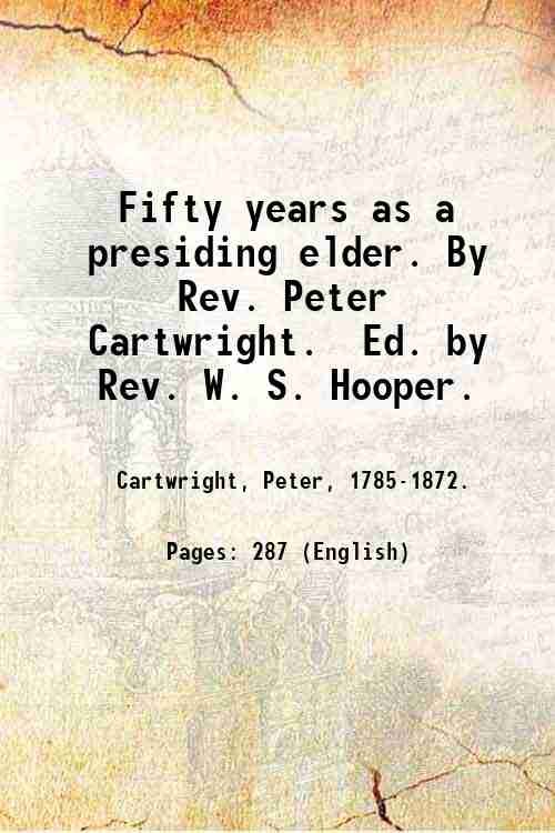 Fifty years as a presiding elder. By Rev. Peter Cartwright. Ed. by Rev. W. S. Hooper. 1871