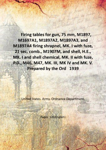 Firing tables for gun, 75 mm, M1897, M1697A1, M1897A2, M1897A3, and M1897A4 firing shrapnel, MK. I with fuze, 21 sec, comb., M1907M, and shell, H.E., MK. I and shell chemical, MK. II with fuze, P.D., M46, M47, MK. III, MK IV and MK. V. Prepared by the Ordnance department, U.S.A., 1939 1939