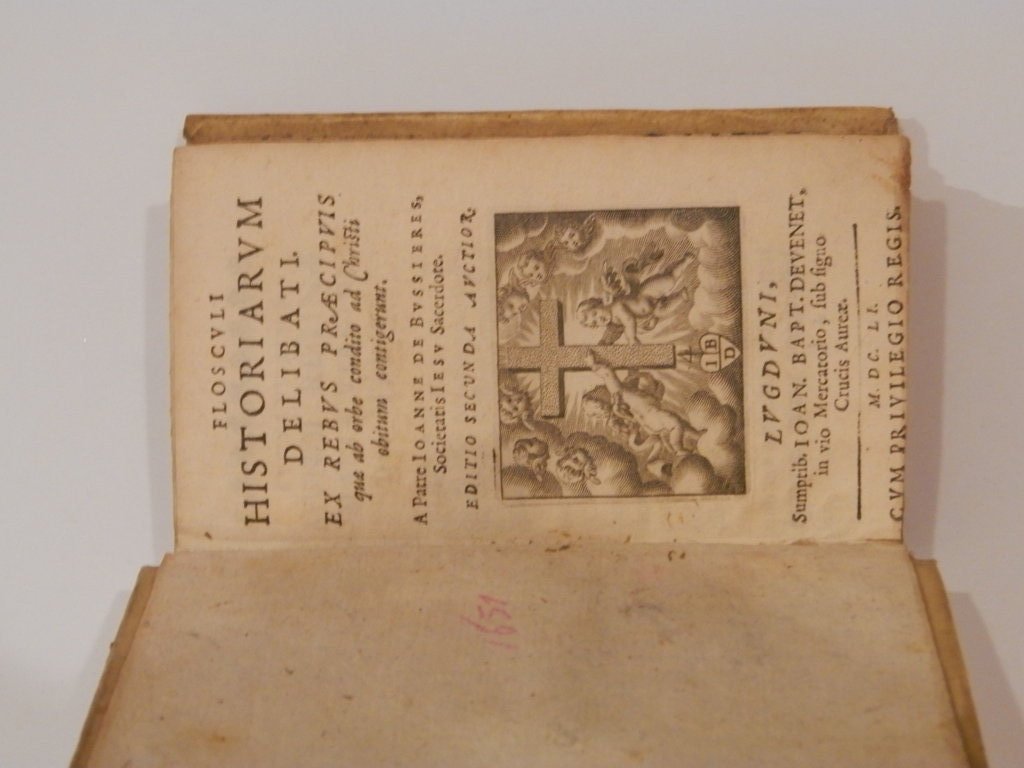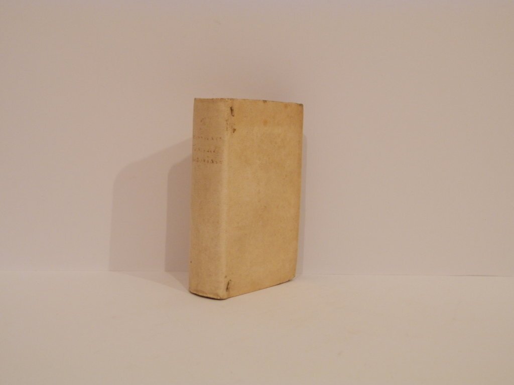 In-12°, mm 120x70, due parti di pp. (8), 210, (22) e pp. (16), 344, (24). Legatura coeva in pergamena rigida con bella ed elegante decorazione floreale ai contro-piatti con coloritura originale. Vignetta calcografica al frontespizio, lievi e sporadiche bruniture alle carte, peraltro molto ben conservato. Seconda edizione di questo compendio cronologico della storia universale per mano del cistercense francese Bussiere. poi nominato cardinale da Gregorio XI nel 1375. Questa edizione è presente con solamente tre esemplari nel catalogo nazionale ICCU, da far notare come la prima edizione (anch'essa rara) compaia nel 1649 sempre per lo stesso editore lionese, solamete due anni prima della nostra edizione e si esaurisca in un'opera più scarna di pp. 286 (18) al confornto della presente pubblicazione ampliata e migliorata.. *** TUTTI I NOSTRI LIBRI SONO VISIBILI PREVIO CONTATTO MAIL O TELEFONO NELLA NUOVA SEDE DI MILANO: LIBRERIA COSMOPOLIS, VIA JOMMELLI, 22. ***