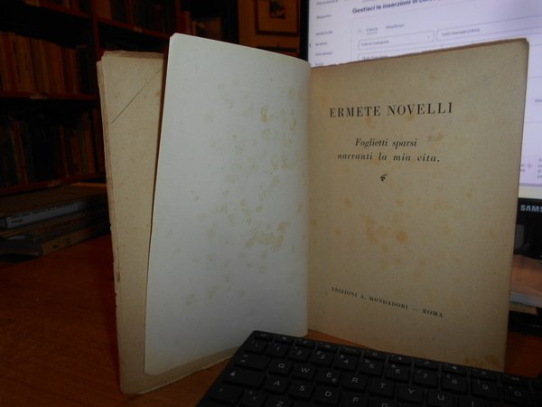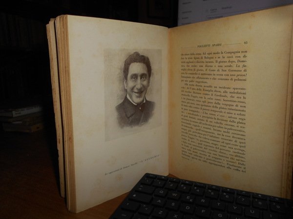 Foglietti sparsi narranti la mia vita. Novelli, Ermete - Roma, A. Mondadori, 1919. In-8°, br. cop. col ritratto dell' artista, 221, (1) pp. e 16 tavole f.t. con doppia ill. In buono stato di conservazione. Uff. scat. 1 Tin.