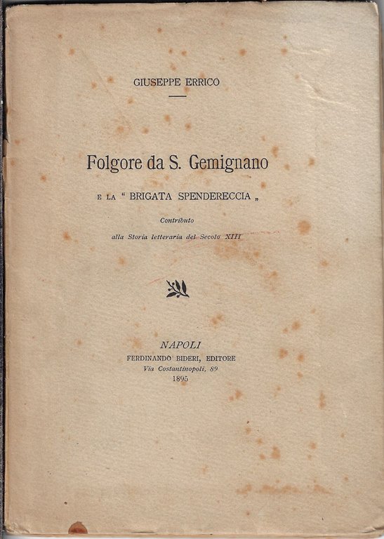 Folgore da S. Gemignano e la 'Brigata spendereccia'. Contributo alla storia letteraria del secolo XIII