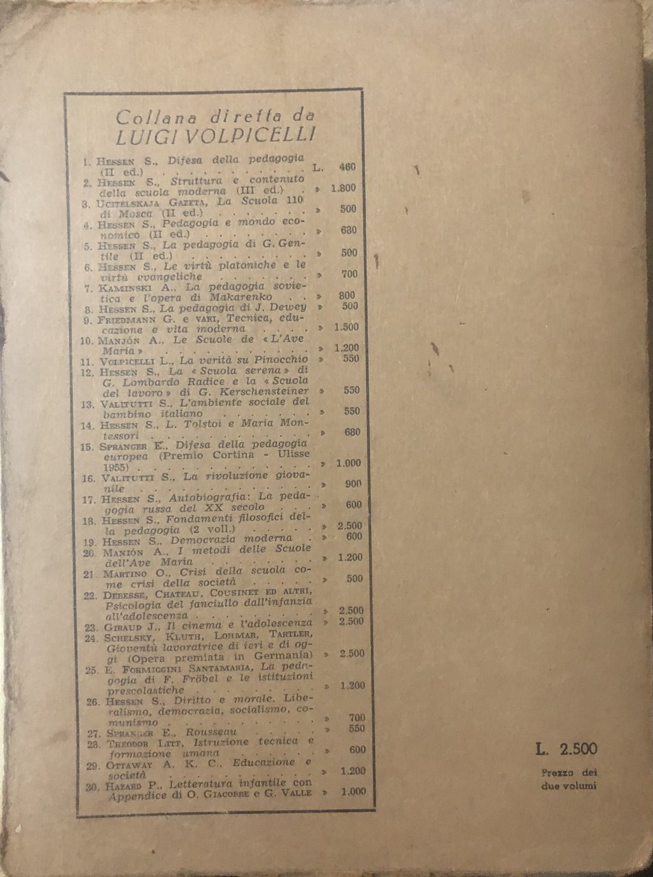 Libro usurato dal tempo. Brossura editoriale deteriorata. Prima ristampa. I problemi della pedagogia. Scritte a penna. Rare sottolineature flessibile 289 Mediocre (Poor) .