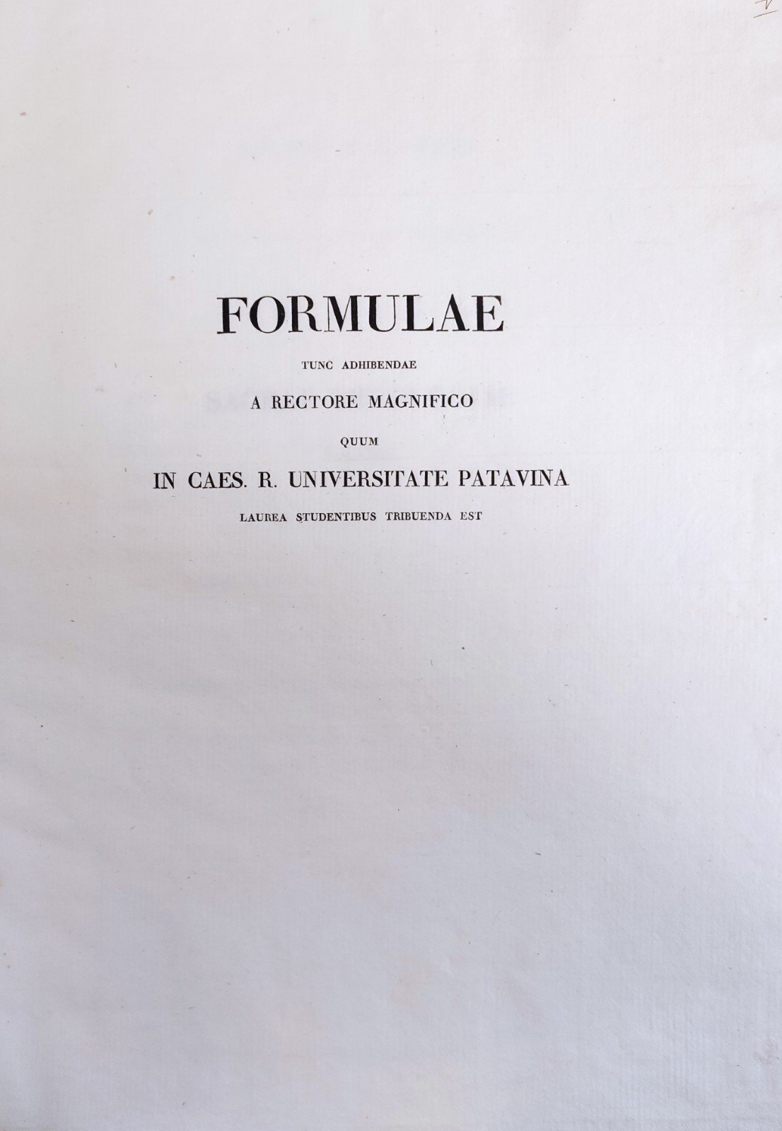 FORMULAE TUNC ADHIBENDAE A RECTORE MAGNIFICO QUUM IN CAES. R. UNIVERSITATE PATAVINA. LAUREA TRIBUENDA EST