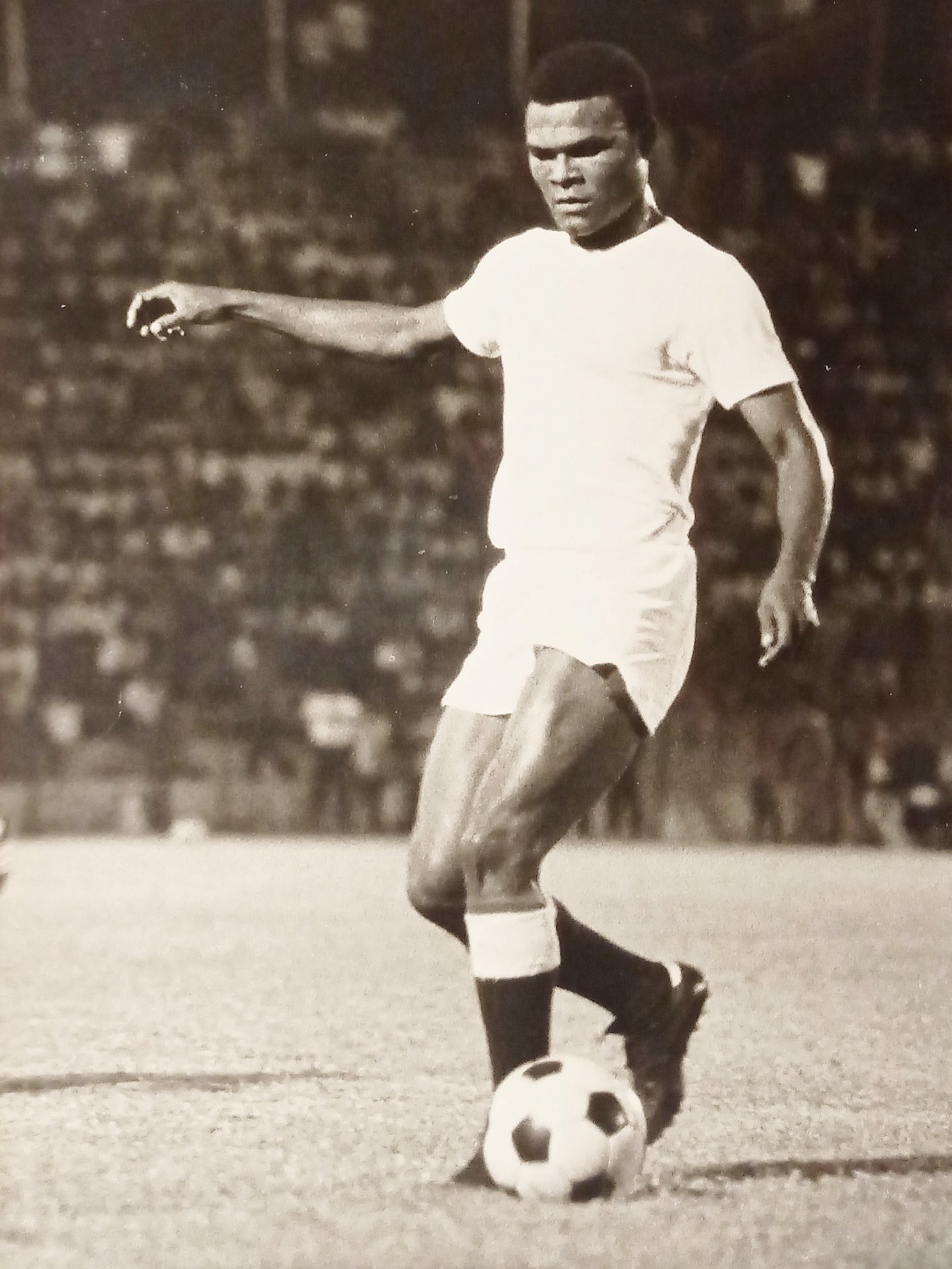 Foto dell'Agenzia Olympia - Nazionale di Calcio di Haiti - Claude Barthélemy - Anni '70 Dimensioni 24 x 18 cm ca. Condizioni molto buone. Claude Barthélemy è stato un calciatore haitiano, di ruolo attaccante.