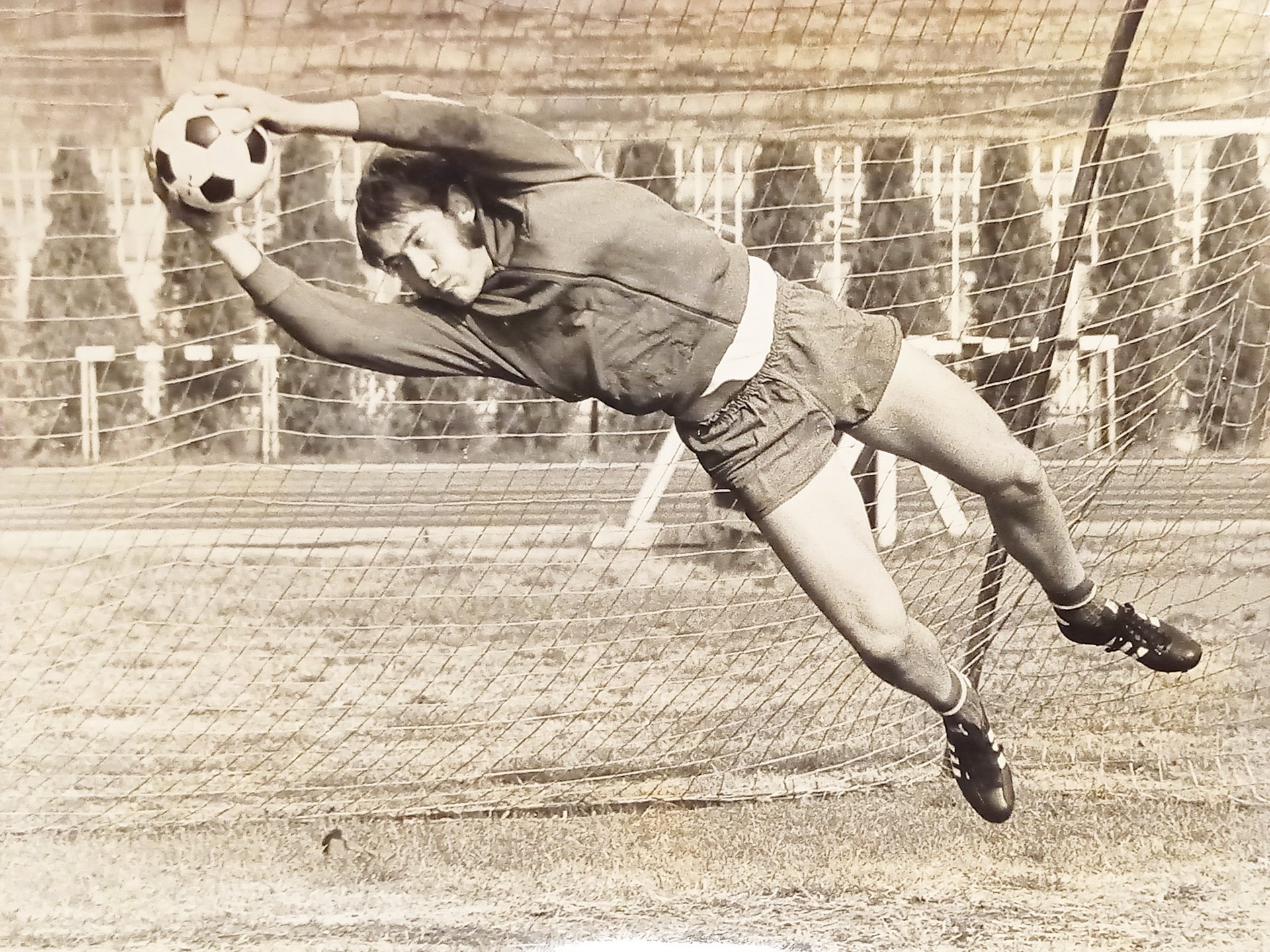 Foto Agenzia - Sport Calcio - Calciatore tedesco Volkmar Groà - 1970 ca.  Dimensioni 24 x 18 cm ca. Condizioni molto buone. Volkmar Groà (Berlino, 31 gennaio 1948 â 3 luglio 2014) è stato un calciatore tedesco, di ruolo portiere. Â