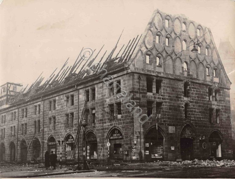 Foto Norimberga Maut Halle prima e dopo attacco terroristico timbro agenzia 1943