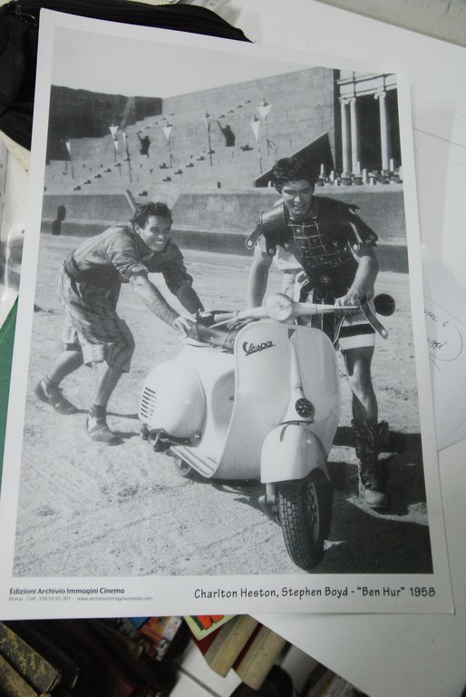 foto poster charlton heston e stephen boyd sul set di ben hur