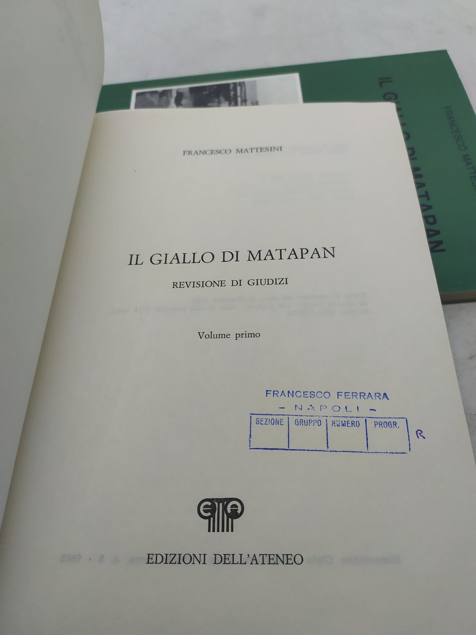 francesco mattesini il giallo di matapan revisione di giudizi 2 volumi . , 1985 italiano, pp. ^^