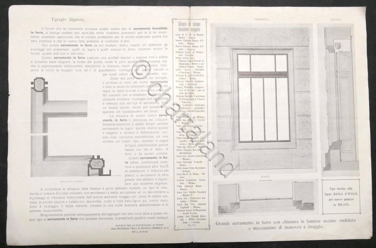 Fratelli Bombelli Milano - Brochure Serramento Brevettato in ferro - 1910 ca.