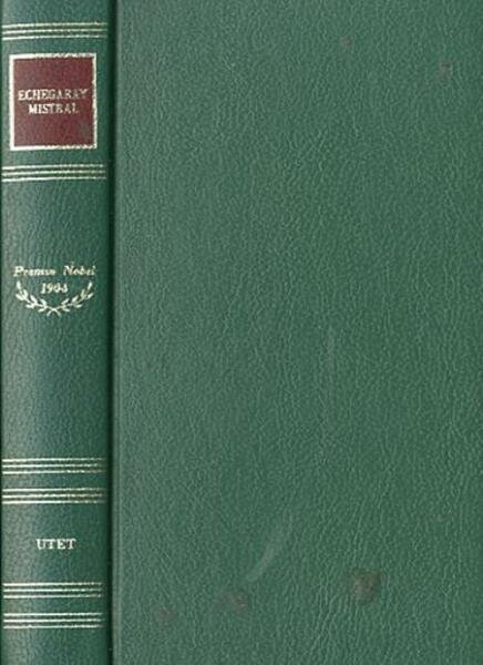 XL, 671 p., [2] c. di tav. : ritr. ; 19 x 11 cm. Scrittori del mondo: i Nobel. A cura di Piero Raimondi. Contiene: di Frédéric Mistral, «Mirella», «Poesia», «Prosa»; di José Echegaray, «O pazzia o santità», «La morte sulle labbra». Sul dorso del volume: Premio Nobel 1904. Legatura editoriale, coperta in cartone rigido in similpelle di colore verde, titolo impresso in oro e riquadrato al dorso, muto il piatto. All'interno due ritratti degli autori in tavole fuori testo. Codice libreria 7322.