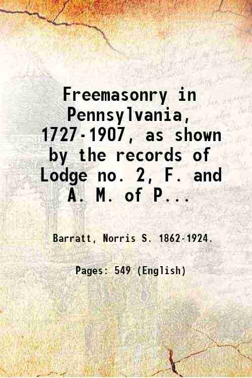Freemasonry in Pennsylvania, 1727-1907, as shown by the records of Lodge no. 2, F. and A. M. of Philadelphia, from the year A. L. 5757, A. D. 1757; compiled from original sources by Norris S. Barratt, Julius F. Schse. Volume 2 1909