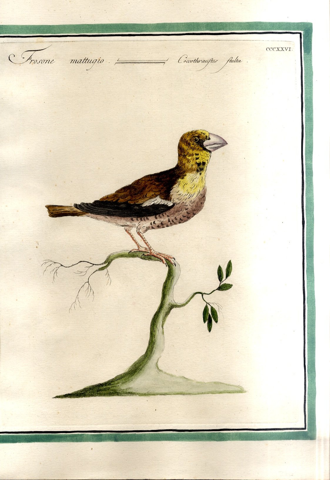 >Incisione originale in rame. cm 44,5 x 35. Splendida tavola numerata incisa in rame e finemente acquarellata da mano coeva. Tratta da "STORIA NATURALE DEGLI UCCELLI"A cura di Saverio Manetti, Lorenzo Lorenzi e Violante Vanni, 1771-1776.