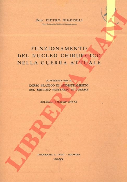 Funzionamento del nucleo chirurgico nella guerra attuale. Conferenza per il corso pratico di addestramento sul Servizio Sanitario di Guerra.