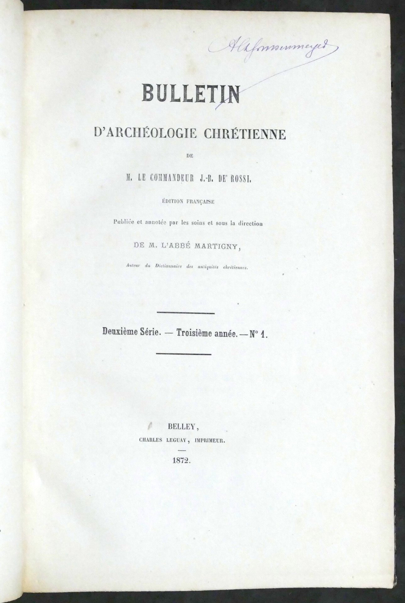 G. Battista De Rossi - Bulletin d'Archéologie Chrétienne - ed. 1872 / 1873