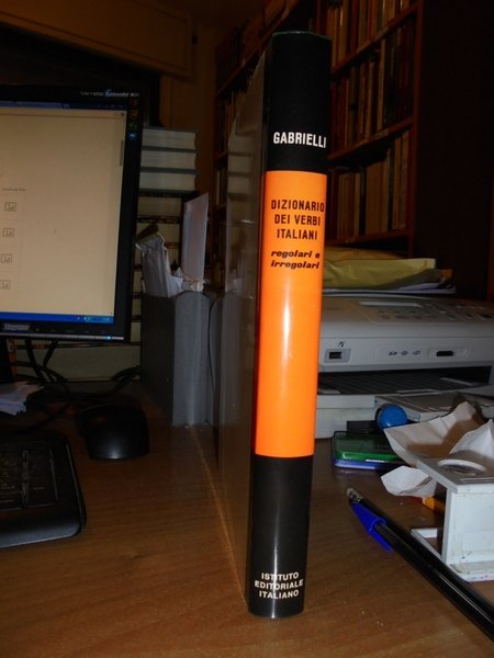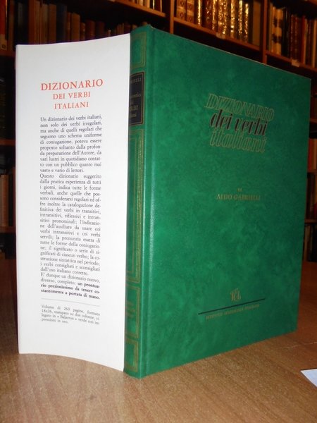 Aldo, Gabrielli - Milano, Istituto Editoriale Italiano, 1971. GABRIELLI Dizionario dei verbi italiani regolari e irregolari. Prima edizione. In-8° grande, similpelle e i titoli in oro sul piano e nel dorso con sovracopertina, 259 pp. Come nuovo. Uff. TV. mob. nostro