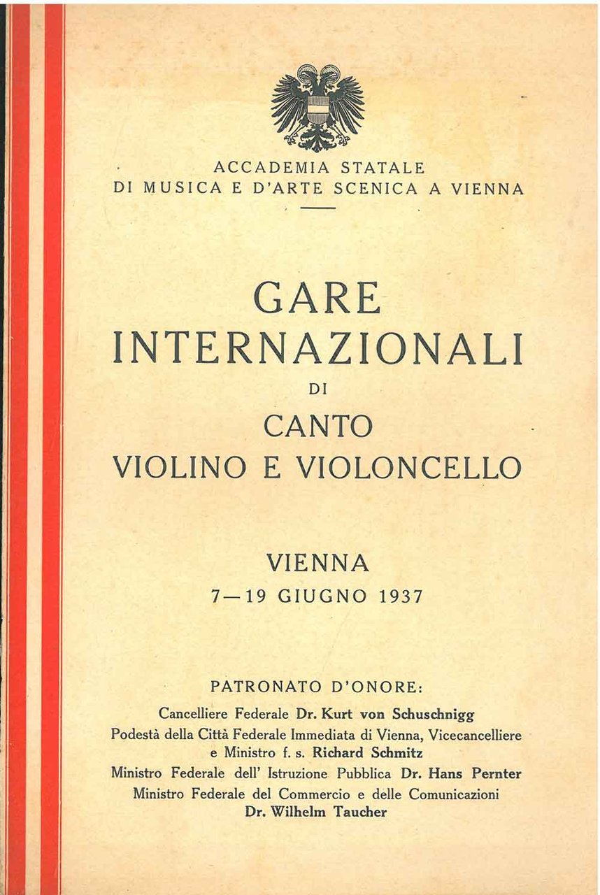 Gare internazionali di canto, violino e violoncello. Vienna, 7-19 giugno 1937