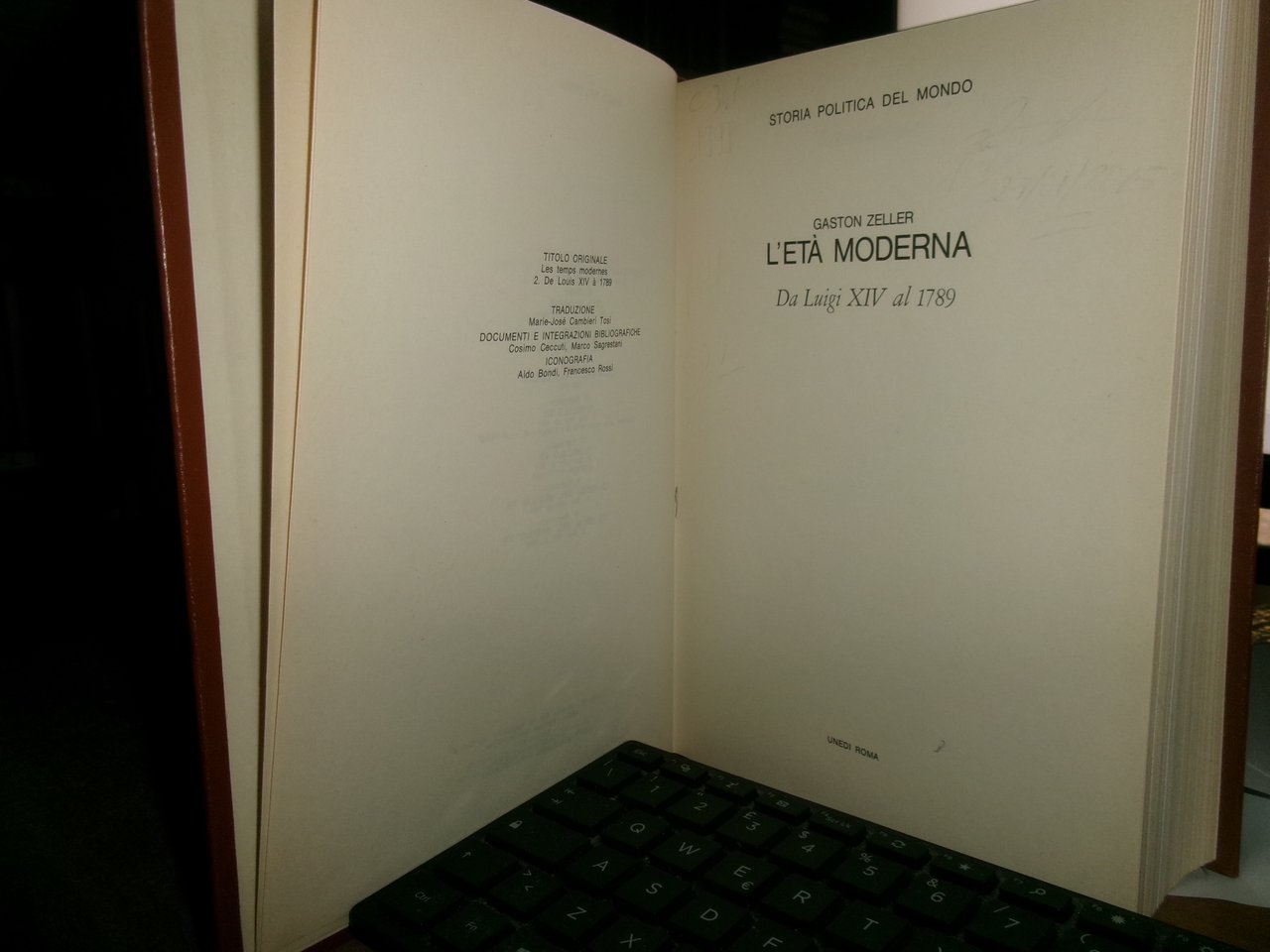 GASTON ZELLER. L' Età Moderna da Luigi XIV al 1789 volume 3. Roma, Unedi, 1976. In-8°, similpelle con titolo dorato al dorso. 674 pp. con 454 figure in nero in tavole f.t. stampate su carta patinata. Ottimo stato. B - III - 3 - 2