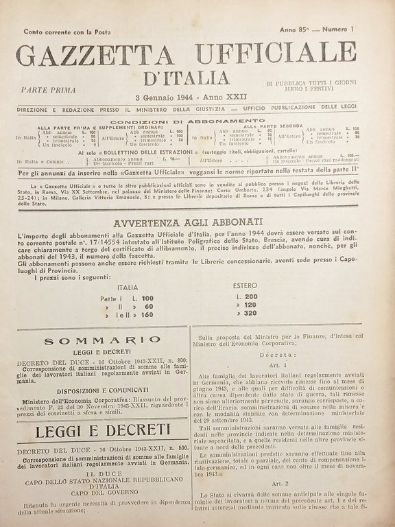 Gazzetta Ufficiale d'Italia N. 1 - 1944