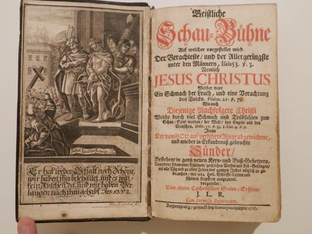 Geistliche Schau-Buuhne Auf welcher vorgestellet wird Der Verachteste, und der Allergeringste unter den Mannern, Isaia 53. V. 3. Nemlich Jesus Christus Welcher ware Ein Schmach der Leuth, und eine Verachtung des Volcks. Psalm. 21. V. 7