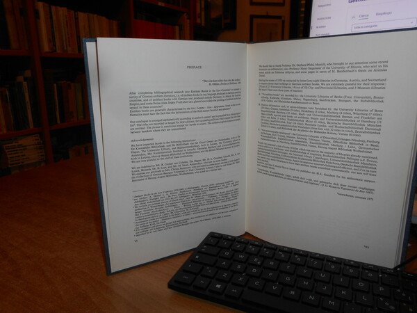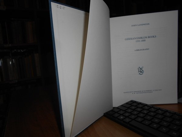 JOHN LANDWEHR. A.W. Sijthoff/Leyden, Haentjens Dekker & Gumbert/Utrecht, 1972. GERMAN EMBLEM BOOKS 1531 - 1888. A Bibliography. In-8° grande, tela edit. bleu con titolo in oro al dorso e fregio sul piano anteriore. vii, 184 pp. Come nuovo. Uff. E - I - 5