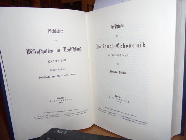 ROSCHER, WILHELM. West Germany, Druck: Anton Hain Meisenheim (Glan), 1965. GESCHICHTE DER NATIONAL-OCKONOMIK IN DEUTSCHLAND. First reprinting, 1965. In-8°, tutta tela edit. con titolo in oro al dorso. viii, 1085 pp. Come nuovo. Uff. B - III - 4 - 2