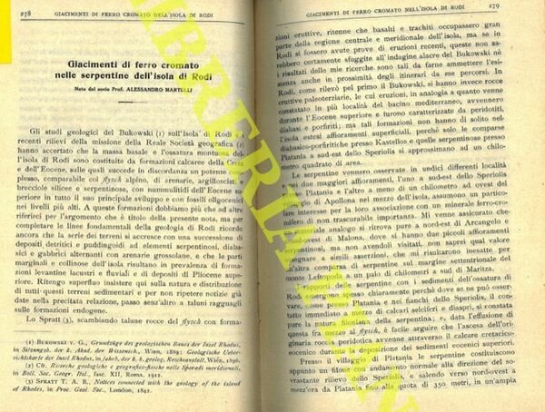 Giacimenti di ferro cromato nelle serpentine dell'isola di Rodi.