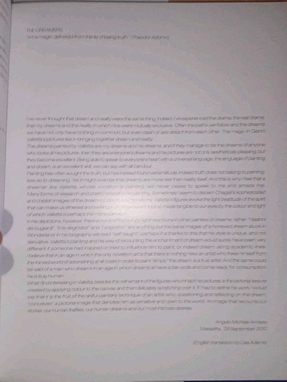 Annese, GIANNI VALLETTA. i sognatori - Grafica 080 Modugno, 2010