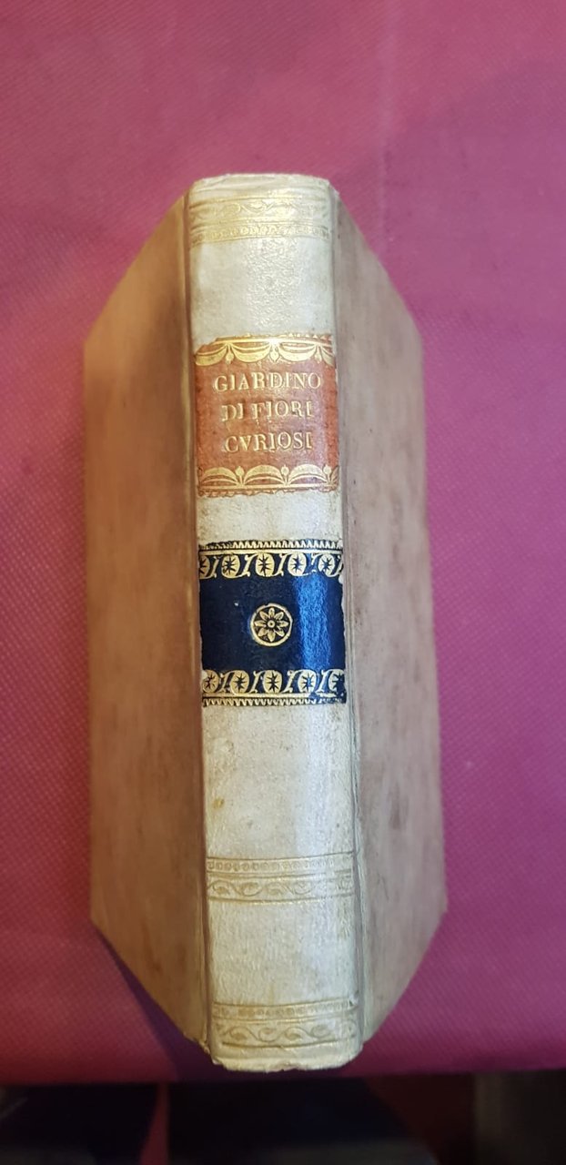 In-16° (158 x 90 mm.), pp, (30), 1 b., 402, marca tipografica al frontespizio, legatura del secolo successivo in piena pergamena rigida, titolo su tassello e fregi in oro al dorso. l frontespizio piccola mancanza nella parte centrale dovuta presumibilmente per la cancellazione di una firmo con integrazione e nuova firma di appartenenza. Nel complesso buon esemplare fresco. Celio Malesoini. Avventuriero veneziano, vissuto dal 1531 oltre il 1609, che, dopo avere militato nelle Fiandre al servizio degli Spagnoli, condusse in diverse città d'Italia un'esistenza molto irregolare, ora falsario e truffatore, ora gentiluomo e organizzatore di spettacoli, quando confidente segreto di governi, quando letterato. Ridottosi verso il 1580 nella sua Venezia, pubblicò senza il consenso dell'autore alcuni canti della Gerusalemme liberata; indi tradusse dal francese e dallo spagnolo il Trésor di Brunetto Latini e il Jardín de flores curiosas di Antonio Torquemada. Opera di qualche pregio sono le sue Ducento novelle, composte a Mantova dal 1595 al 1605 per fuggire l'ozio, e pubblicate a Venezia nel 1609.