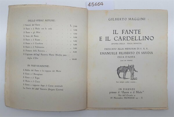 Gilberto Maggini Il Fante e il cardellino Firenze 1931 autografato