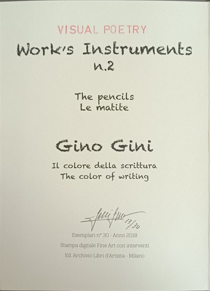 GINO GINI. SCRITTURA. VISUAL POETRY. WORK'S INSTRUMENTS N.2