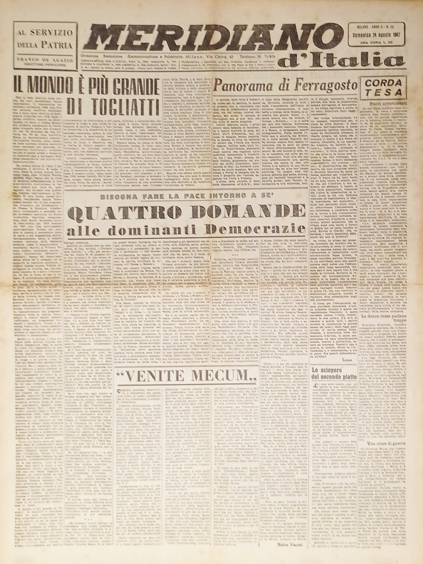 Giornale - Meridiano d'italia N. 30 - 1947 Il mondo è più grande di Togliatti