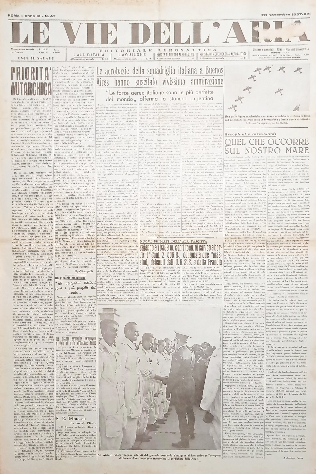 Giornale Aeronautica - Le Vie dell'Aria N. 47 - Priorità Autarchica - 1937