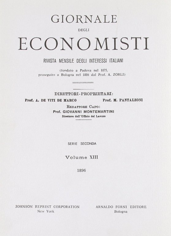 Giornale degli Economisti. 2" serie. Vol. 13 | Rare and modern books |